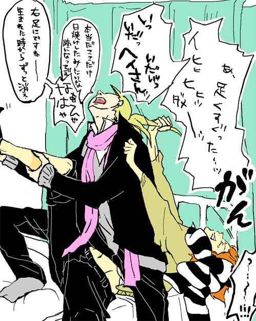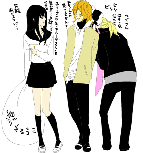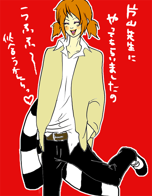 | シチのマゲはどうやって束ねても3つに分かれる。ハチはうまれたときから足首になぞのあと(ひやけ)があるとかいいと本気でおもっていました(いまもな!) |