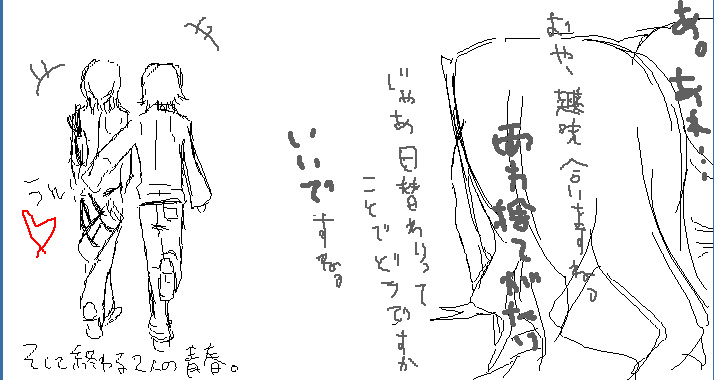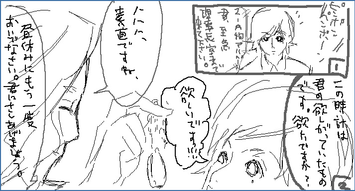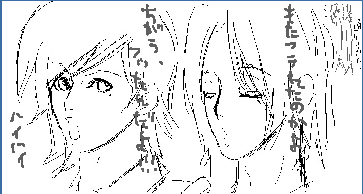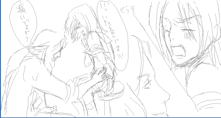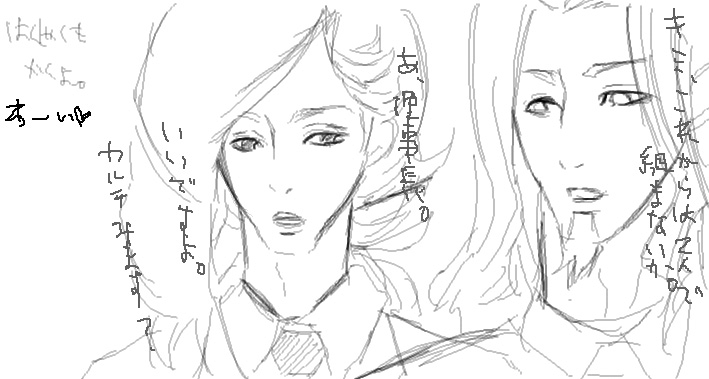 何品か描いた後で疲れが来たのと、若と語る萌え話がばんばん進んで手がおっつかないので絵がガタガタです。