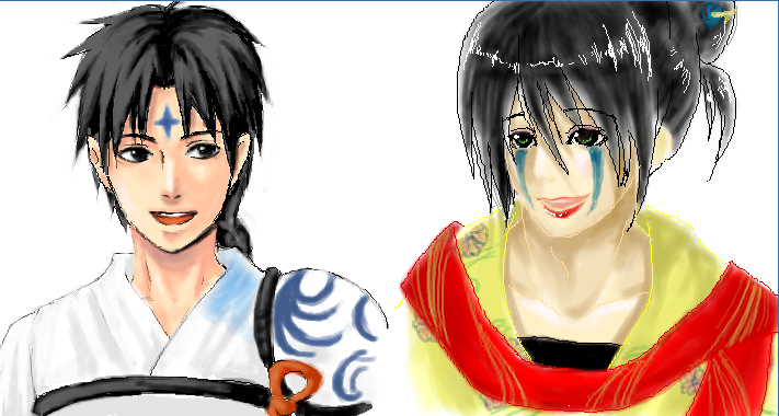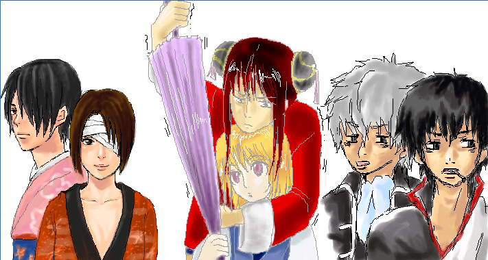 左から二人ずつ 相川覇月さま・粒・若 ココで若がオンラインだったので無理やり召還しました、銀魂に反応したのは若やもん(゚∀。) でっ…着せ替えですよー!き・せ・か・え! どうしてくれようこのステキっぷり。どうしようもない自分の着せ替え好きっぷり( ´,_ゝ`) ガッツリ心持ってかれてどーしよーもなかった! 自分の担当なんてそっちのけで二人の描くのを観察しててごめん(毎度ながらきもちがわるい!)