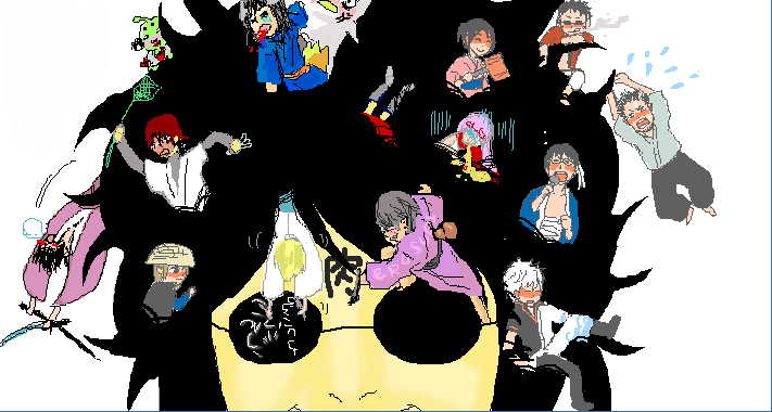 辰馬の頭から皆が生えるところを描きたいと言い出したのはスミマセン私です( ´,_ゝ`) この辺りで確かもうお外が明るくなってきて朝日が目に眩しくなってきたんですたしか 毎度絵茶にお邪魔すると眠気が吹き飛ぶのはなぜですか(・∀・) 辰馬祭りなだけあってワッショイワッショイ言いながら粒と若が土佐弁開始 はづちゃんもノッてくれて、しかも何気に土佐弁が合ってて嬉しかったのでした笑 そんなこと話ながら皆でモッサモッサ辰馬に…ん、んん? …そうやそうや!祭りやからって皆酔わせたんやった!というわけで皆様子が少しずつおかしい! よーく観察してください、めっちゃおもしろい!そんで細かい!笑(雑なのを描く私が約1名まざってますが)
